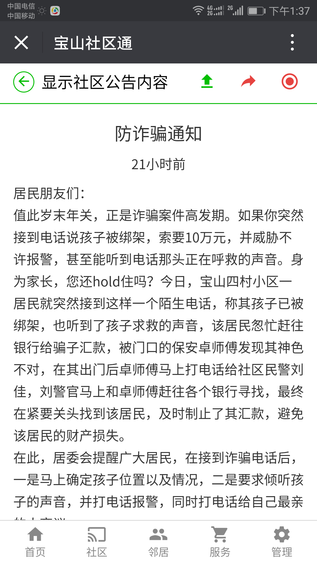 宝山四村:被电话诈骗迷惑欲汇款 保安及时识破保财产安全