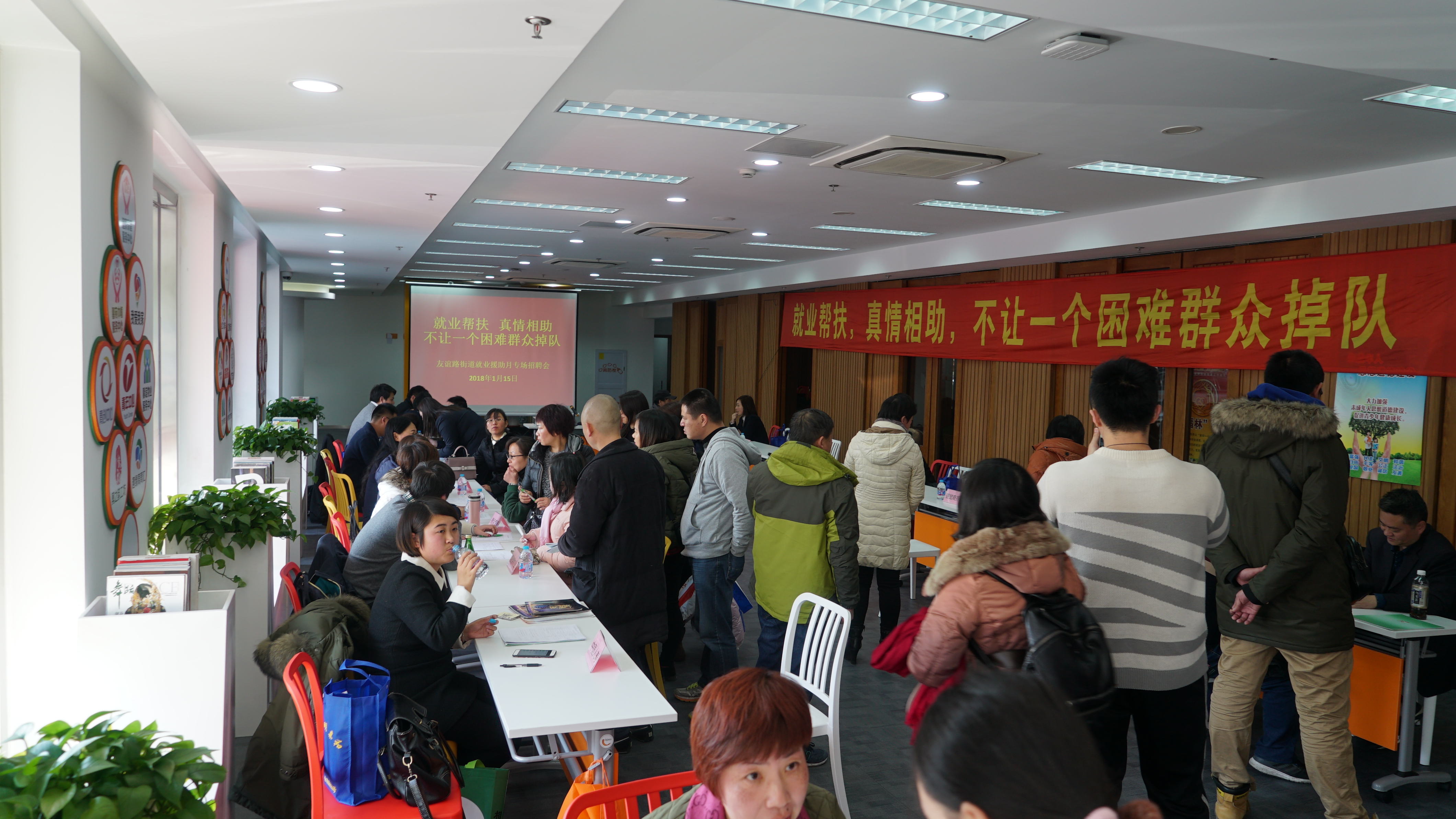 为切实帮助辖区内各类就业困难人员和残疾登记失业人员解决就业问题,结合区就促中心就业援助月活动,1月15日下午,友谊路街道在社会组织服务中心举办了一场以“就业帮扶,真情相助,不让一个困难群众掉队”为主题的专场招聘会。 本次活动主要针对辖区内未就业的就业困难人员、零就业家庭成员和残疾登记失业人员,通过悬挂横幅,发放各类宣传资料,提供有关就业职业指导、职业介绍、创业指导等方面服务的形式开展。在活动现场,我们共发放30类宣传资料150份,现场接待咨询147人次,12家单位前来设摊招聘,共提供了采购、数据统计、储运、前台、IT硬件维护等29个岗位,现场拟录用64人。活动现场还邀请了两位区职业指导专家前来坐镇,为有需求的求职人员进行各类职业指导,帮助他们提升求职技能,转变他们的求职态度。 此次活动取得了较好的预期效果,进一步营造了良好的就业氛围,使那些就业困难人员真正切切地感受到党和政府对他们的关心关爱,使他们在寒冷的冬日体会到一丝丝暖意。 |